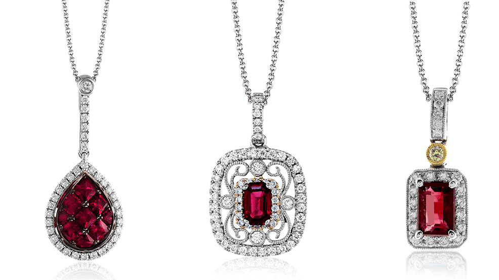Inspired by nature, the fine jewelry of Simon G has long been appreciated for its subtle curves, distinctive detailing, and expressive use of gleaming gemstones and diamonds. And while the earrings, bracelets, and fashion rings of Simon G are truly a sight to be seen, nothing is quite as brilliant as Simon G’s romantic ruby-covered necklaces.