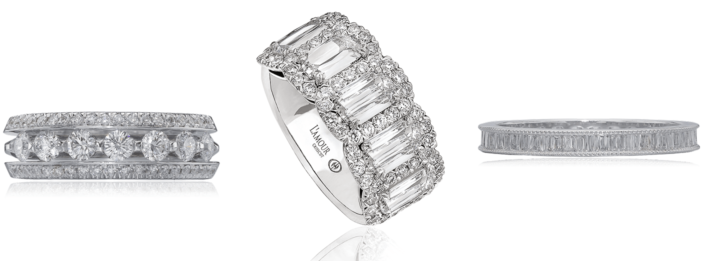 Our top eternity style pics for this Valentine’s Day come from the talented jewelry making artisans of Christopher Designs. Known for their innovative diamond cutting techniques, giving the gift of eternity style rings –such as the Christopher Designs Crisscut L204-5-300 model pictured above – are bright and beautiful ways to celebrate a lifetime of love and togetherness.