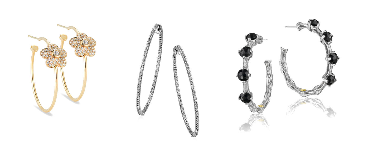 For an edgier look, turn to the TACORI Classic Rock SE13819 which features striking black onyx stones to adorn the smooth silver hoop. The earrings also feature a hidden 18kt gold gem seal in the interior to ramp up the elegance of these show-stopping accessories. These earrings pair well with another winter trend, punk rock-inspired clothing chock-full of rings, studs, patches, and more.